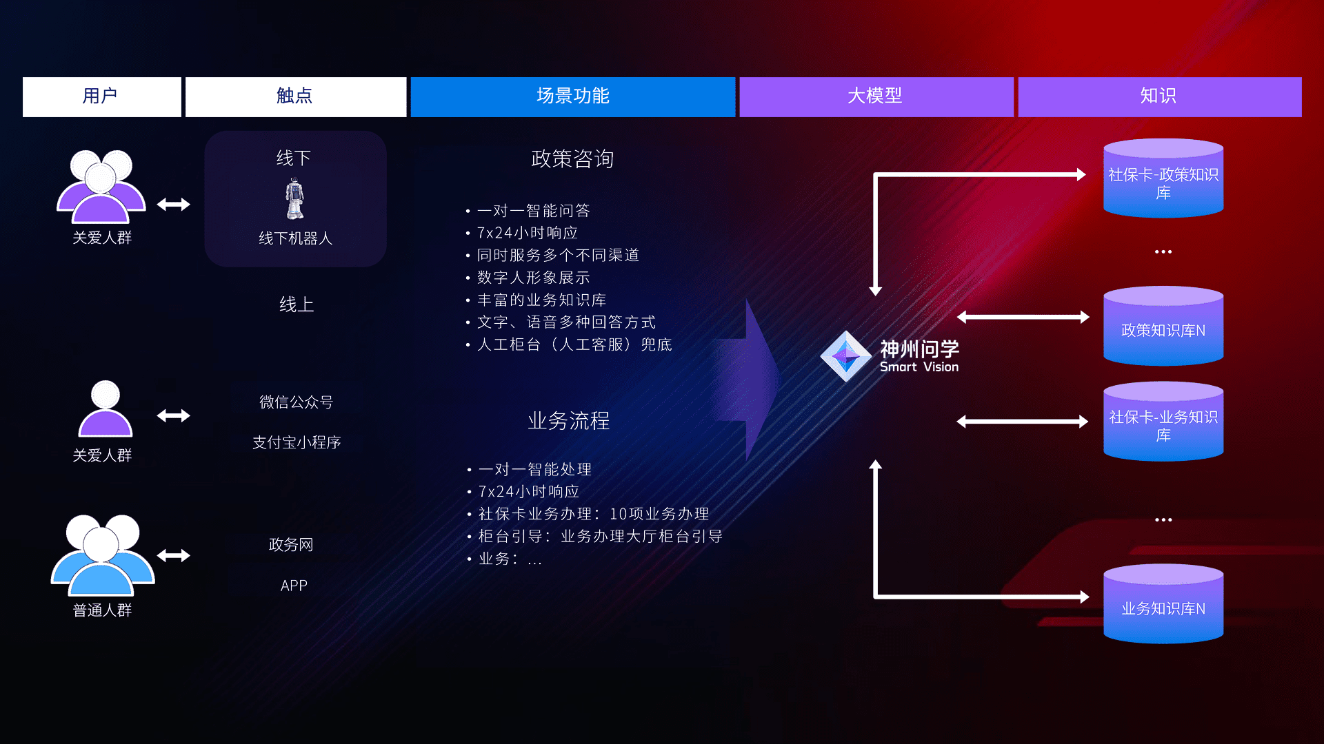 • 线上线下全覆盖:线上提供微信公众号、、支付宝小程序、、、、政务网、、、app多种渠道,,,,与线下机器人形成完整服务体系。。。